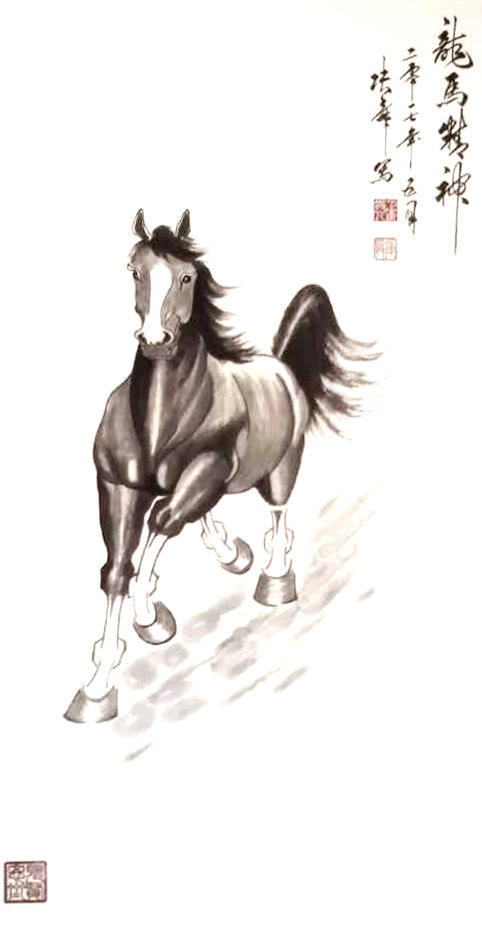 龙马精神马的相貌英俊,体态强健,鬃毛秀美,色泽华丽,勇往直前,对主人重视,所以人们喜爱马,把它当作吉祥寓意的题材。当代国画艺术中,画马的画家也是不胜枚举,国画马在国画收藏中占有重要的地位,是国画收藏中不败的常青树。