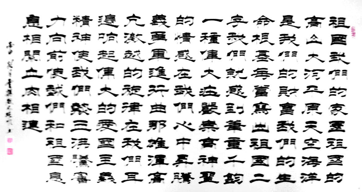 张舜老师的书法,以历代书法艺术为源头,形成了一种既具有坚实的功底又彰显了自家特点的书写风格,既取法于历代书法大家作品的精髓,又不拘泥于书法大家的作品风格,其书法的笔划、结构、造型寻求韵味,张舜老师研习书法,颇有心得,讲究法度,合法才能质美,聚点画而成字,平衡对称,对比和谐,主攻得宜,疏远适度,字样统一,耐人寻味。