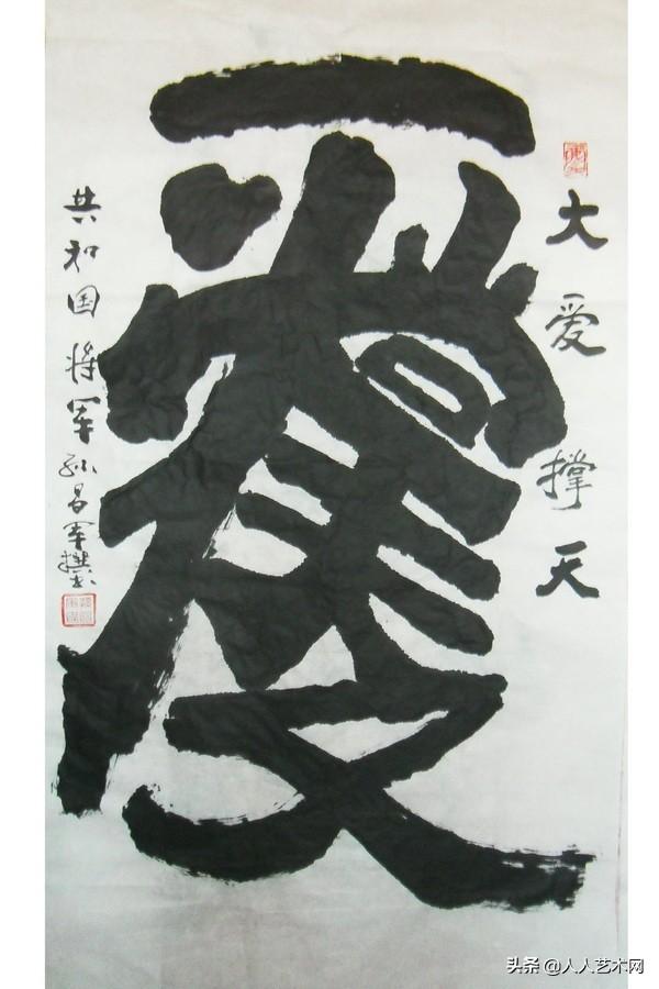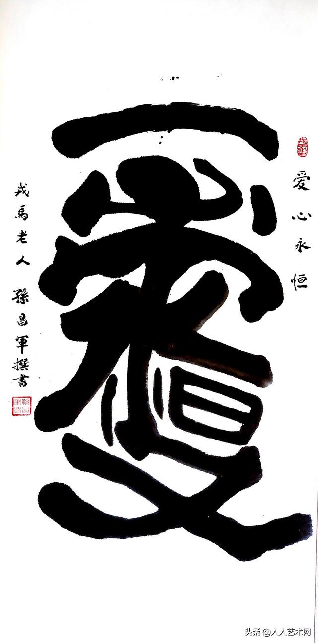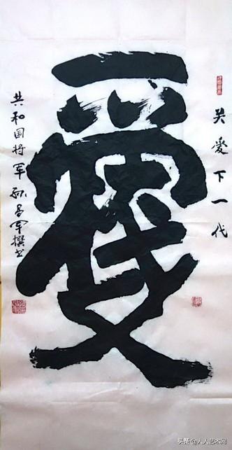 基于同样的心情,一个“爱”字,孙将军还创造了“大爱无疆“一帆风顺”“关爱下一代”等妙趣横生的组合,但愿人们能理解一位老将军的良苦用心。一个“爱”字,他用不同的方式和情感来进行了完美的阐述和诠释;一个“爱”字,成为了他表达情感和爱憎的载体!