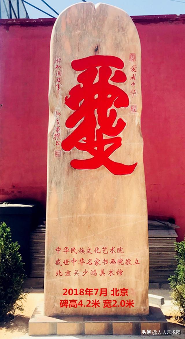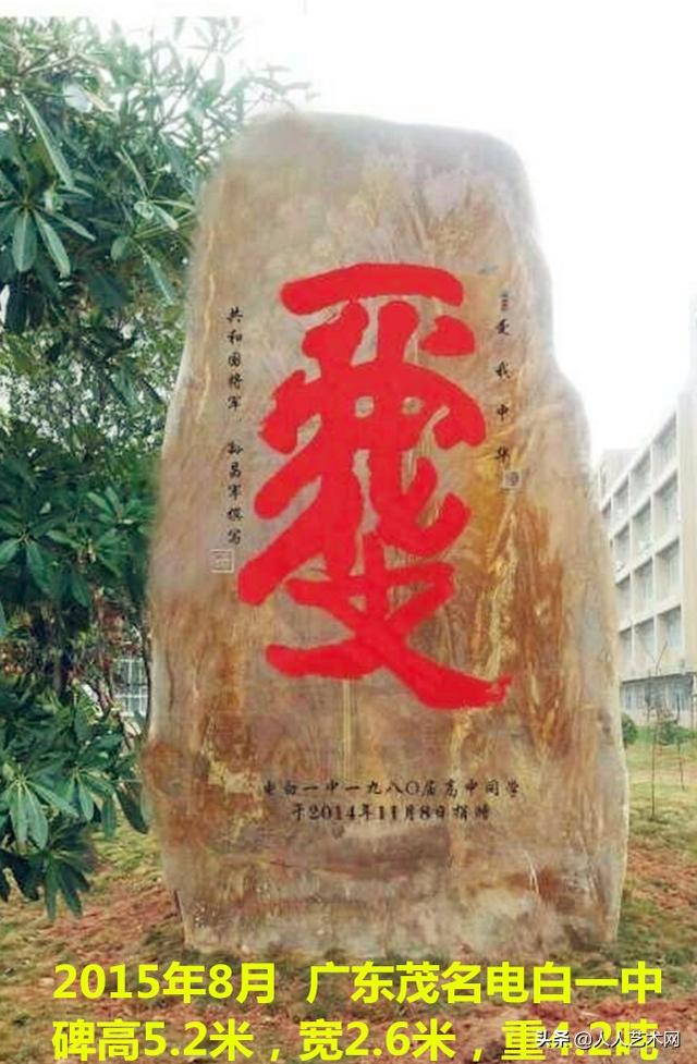 孙昌军将军的组字书法,因为独具匠心和充满智慧而逐渐为人瞩目,影响和社会意义也越来越大。很多博物馆图书馆收藏了他的字,湖北省蕲春县张体学中学,将他的“爱”字刻在一块大石头上,立在校门口,这个“爱”字里有“一帆风顺”4个字,寄托着人们对祖国花朵的祝福和期望。