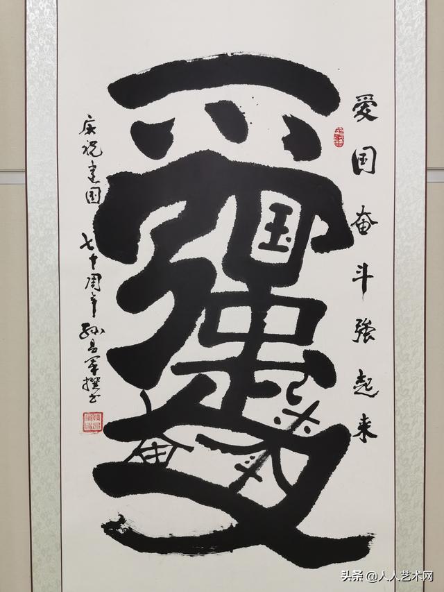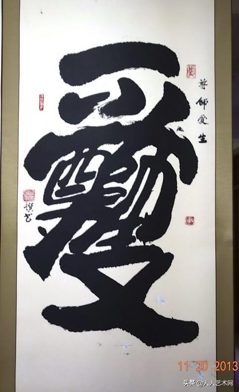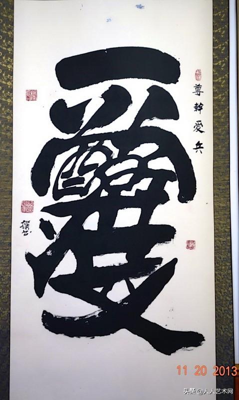 孙将军的贡献,就是将组字书法发扬光大,他所做的努力和尝试,他对组字艺术的传承,也许现在看来还不起眼,但它正逐渐被大众所了解和接受,说不定有一天,它会成为一门独立的艺术,为中华书法艺术的百花园增加一朵奇葩!
