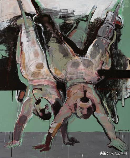 董贵晗《高跷舞·兄弟》 油画布+丙烯 180x150cm 2014年