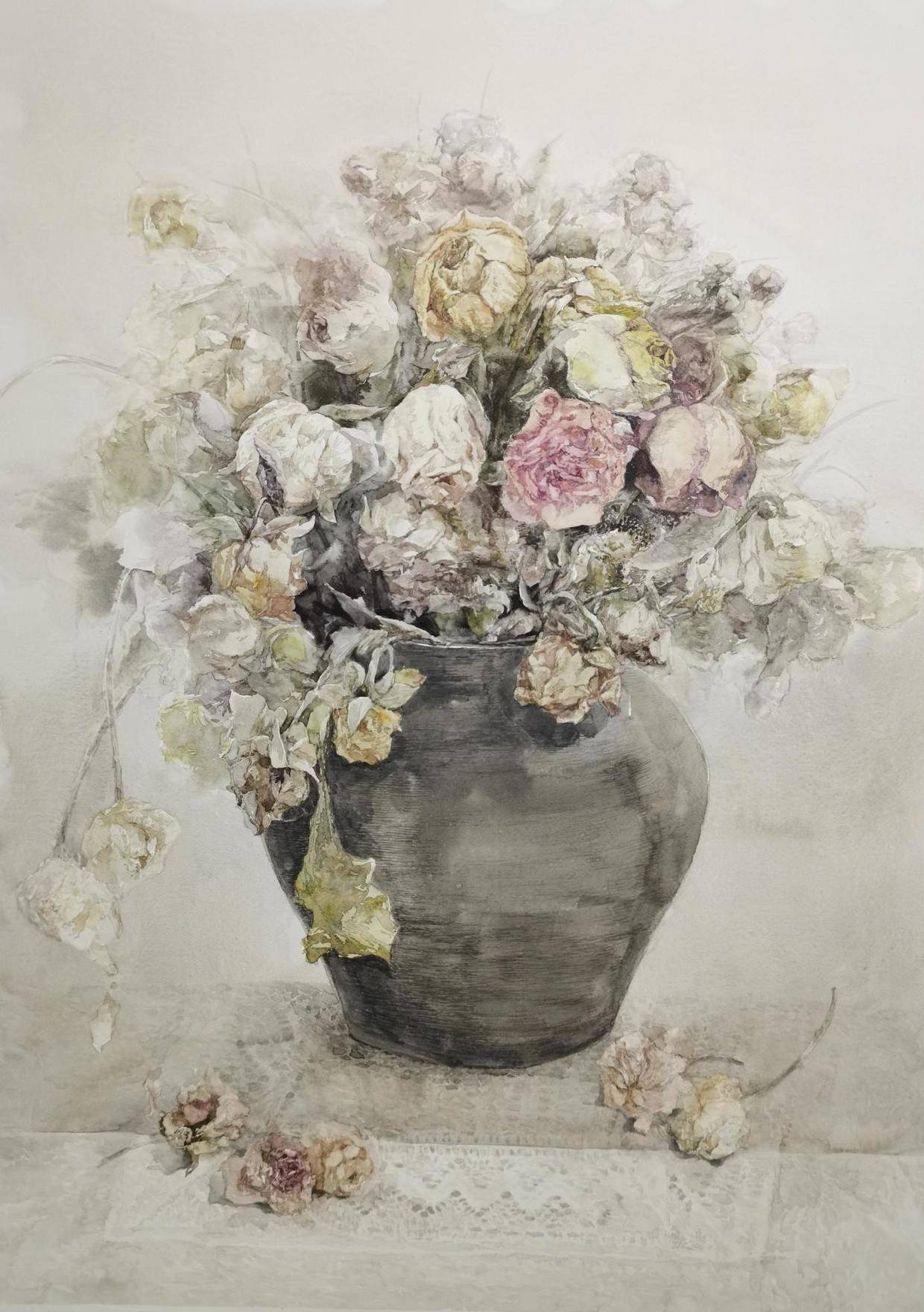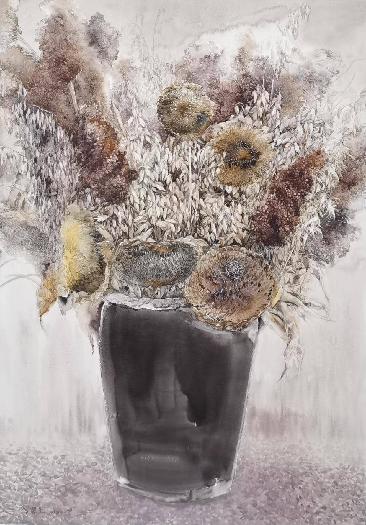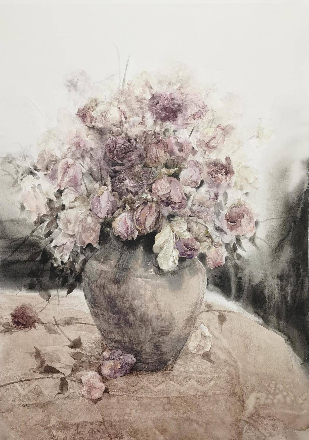 画家吴翠英 吴翠英,女,1968年生于山西大同。山西省美术家协会会员,山西省水彩协会会员。 本科毕业于山西大学美术系,先后于连环画报、中央美院版画系、北京石齐画院、青岛国际水彩高研班进修学习。 2017年,《七月花柳沟》入选山西右玉首届中国水彩艺术节作品展。 2017年12月,水彩作品 《夏日荷韵》入选山西省第十八届水彩写生展; 2018年,连环画《车摊儿》入选“东升杯”全国连环画征稿大赛美术日记; 2018年,水彩作品《牡丹花开》入选“万象彩韵”—第二届山西省色彩作品展,获优秀奖。 2018年,水彩作品《五月印象》入选“美丽山西.第五届小幅水彩写生作品展”。 2019年,水彩作品《即将消失的记忆》入选“第十七届山西省美术作品展”。 2019年,水彩作品《乡村记忆》入选第二届全国人民教师水彩粉画作品展。 2019年,水彩作品获《莱顿纸业.2019年全国水彩写生大奖赛》三等奖。 2020年,水彩作品《刚與柔—流调医者在敬老院》入展“众志成城 春暖花开—山西美术作品展”,无偿捐赠于我省抗击新冠疫情一线的医疗机构。 作·品·鉴·赏《花卉系列一》110x86cm 2020 《花卉系列二》110x86cm 2020 《花卉系列三》110x86cm 2021 《花卉系列四》110x86cm 2021 《花卉系列-五月丁香》110x86cm 2021 《花卉系列-六月丁香》110x86cm 2021 《春暖花儿开》38x56cm 2020 《牡丹花开》38x56cm 2018 《花语》31x41cm 2020 《花自妖娆》38x56cm 2020 《花自清雅》38x56cm 2020 《即将消失的记忆》38x56cm 2018 《乡村记忆》38x56cm 2018 《右玉威平堡》38x56cm 2018