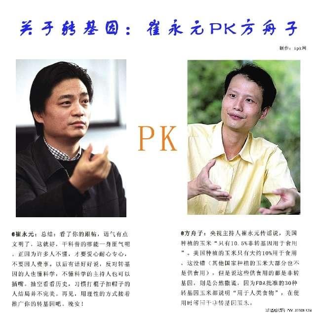 这场论战的导火索是因为方舟子大事宣扬转基因食品的安全问题引发的,也不知道有多少人为此相信方舟子所说的转基因安全,又有多少人坚相信崔永元所说的转基因不安全,不过在目前许多网友的评论都觉得转基因是有危害的。也慢慢地没人去相信方舟子李铁。不知道他俩这么做有什么好处,或者有何不可告人的目的,打着科学的名义去毒害群众。也希望这件事能够结束,让广大群众看清这两个骗子的真实面目是多么的丑陋与丑恶!终有一天那些内心"丑恶""丑陋"危害别人的人会被绳之以法!