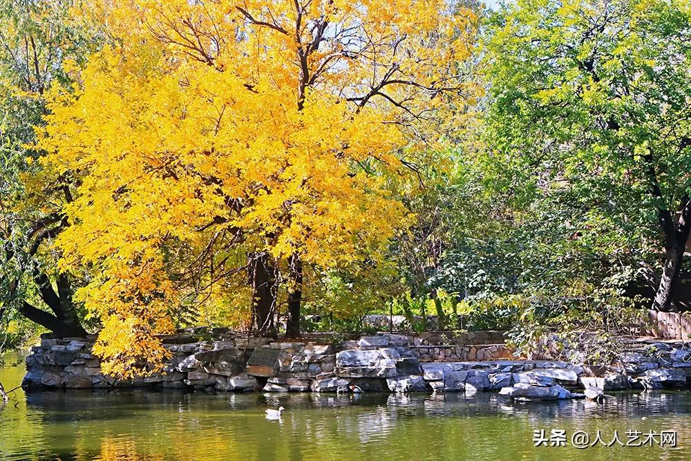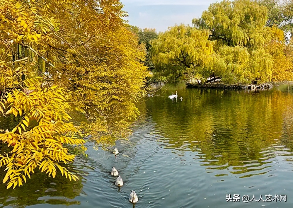 眼下,金黄的银杏逐渐随风吹落,或于草丛,或于水上,成为公园最浪漫的绚丽秋景。
