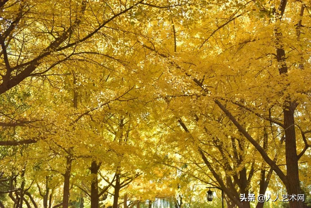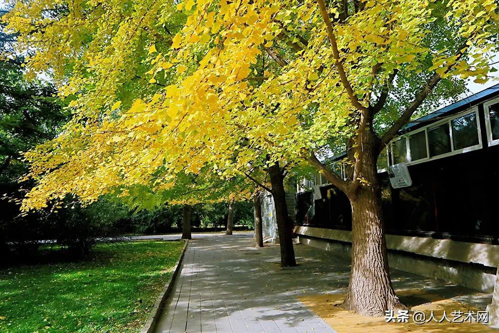 位于陶然亭公园中央岛南侧的银杏大道亦是一片金黄。金色大道映衬亭台,构成晚秋的独特画卷。