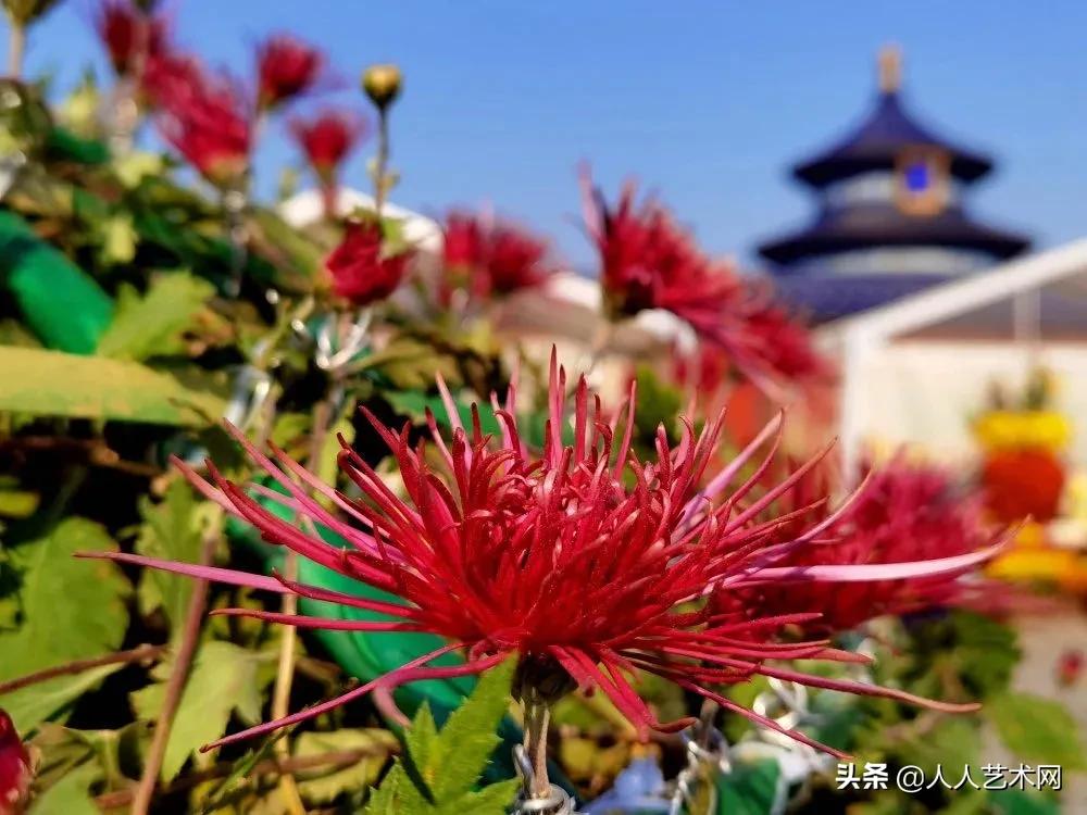 古坛满秋韵,赏菊正当日。以“菊颂古坛神韵,香传盛世华章”为主题的天坛公园第39届菊花展正在举行。这几日的天坛祈年殿景区弥漫着菊花香,吸引着爱菊人。