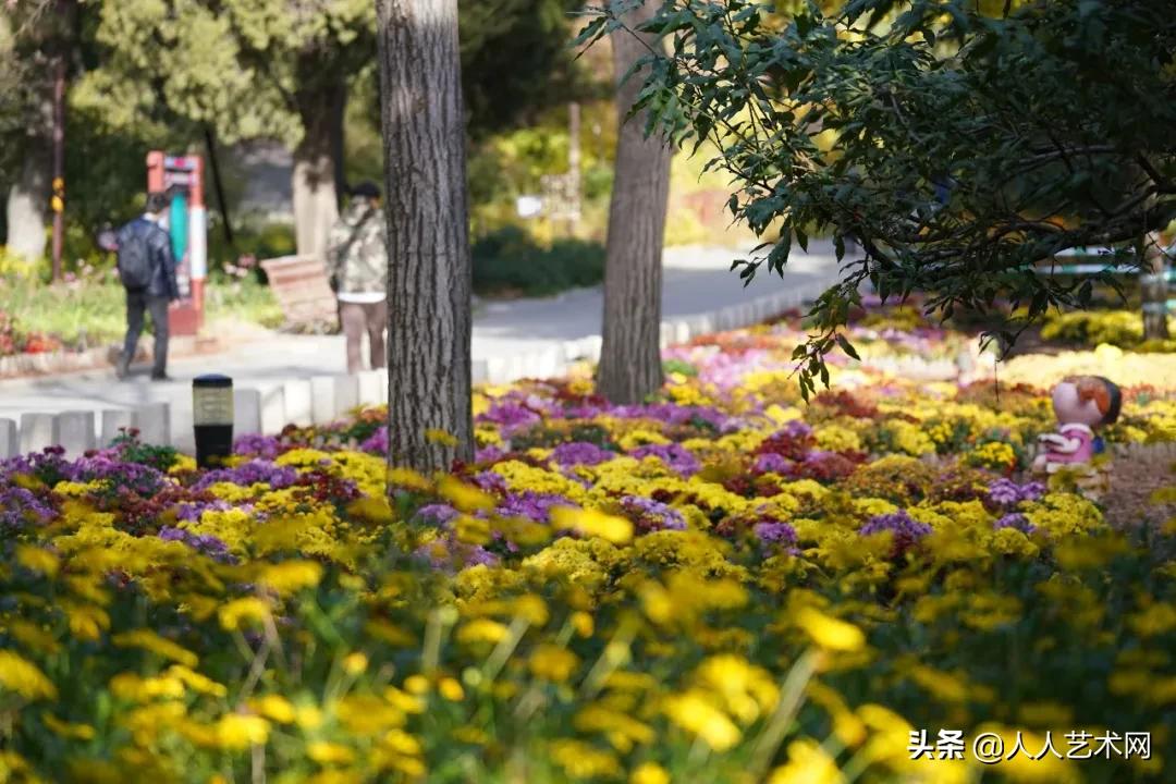 香山公园佳日园景区内汇聚银杏、元宝枫、金银木、水杉等多个树种,艳丽的红色和灿然的金色交相辉映,幻色炫彩。景区内还布置黄菊、红菊、粉菊等品种菊花八千余株,尽显秋日灿烂景致。