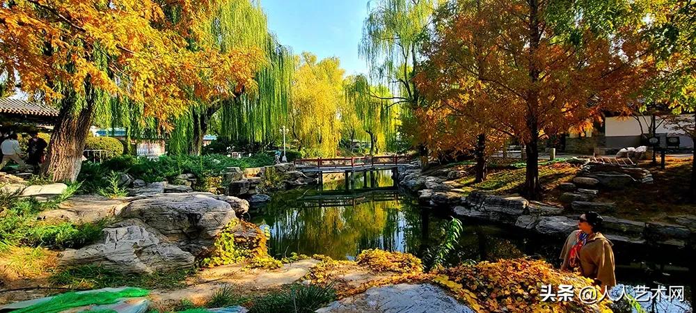 颐和园的后溪河景区以白蜡、朴树等阔叶树种为主,沿后溪河向东,呈现出落叶飘在河水上潺潺流过拱桥,别有风情。
