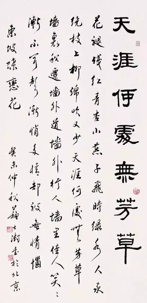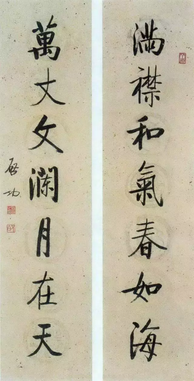 楷书 七言联(满襟和气春如海 万丈文澜月在天)