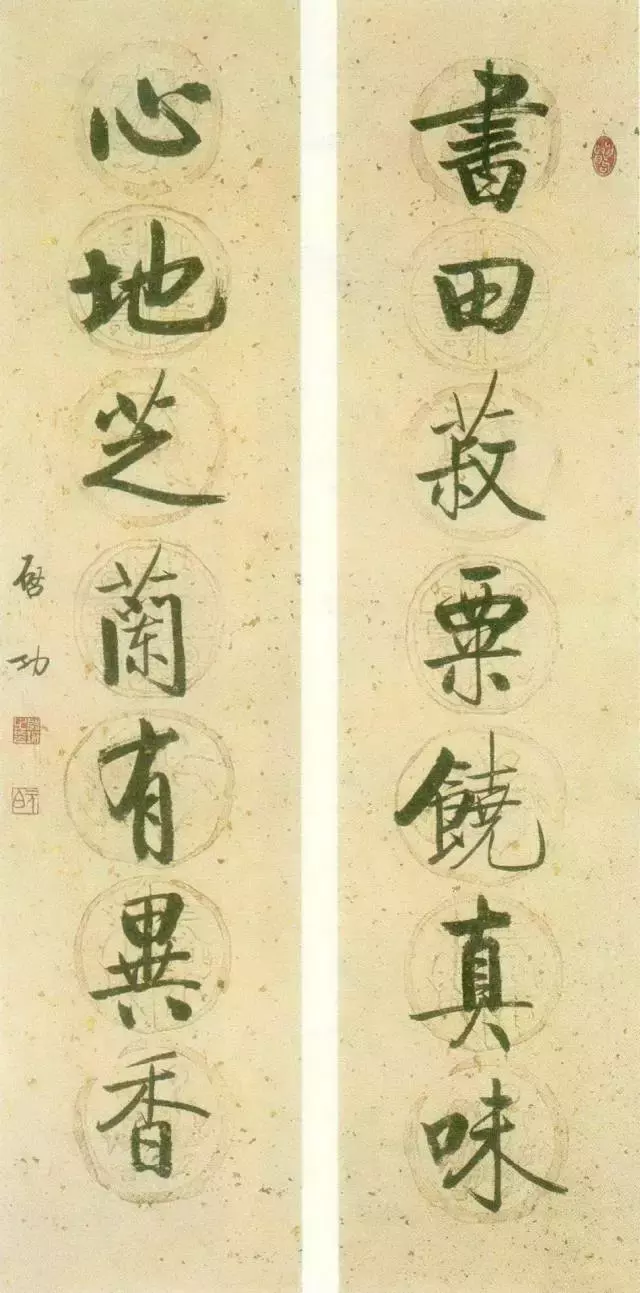 楷书 七言联(书田菽粟饶真味 心地芝兰有异香)