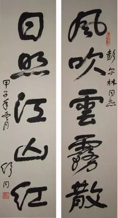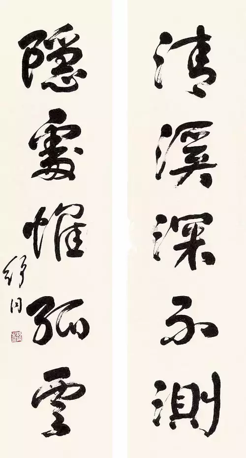 楷书 七言联(袖里虹霓冲霁色 笔端风雨驾云涛)