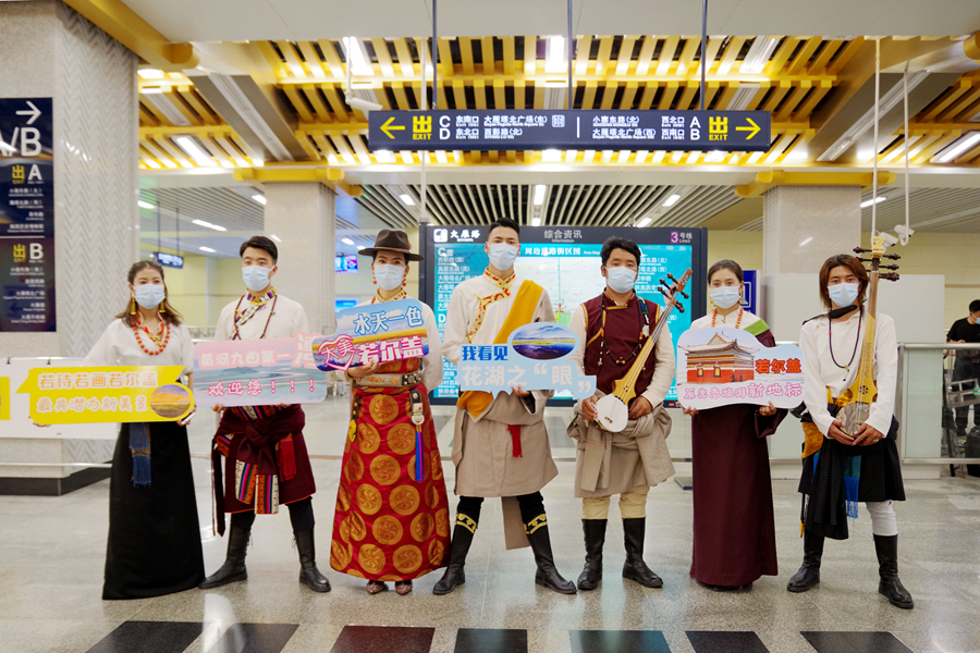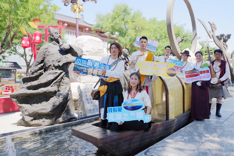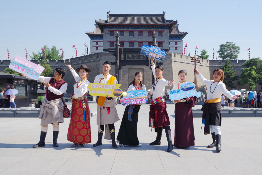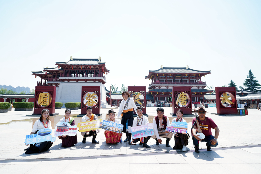 南门广场、大唐不夜城、大唐芙蓉园等网红打卡景点,身着藏装的若尔盖特色民族歌舞表演吸引的大量游客围观,演员们和现场游客进行了热情的互动,宣传若尔盖文化旅游。并进行了快闪活动、抖音短视频拍摄、网络大V直播等全方位的宣传。