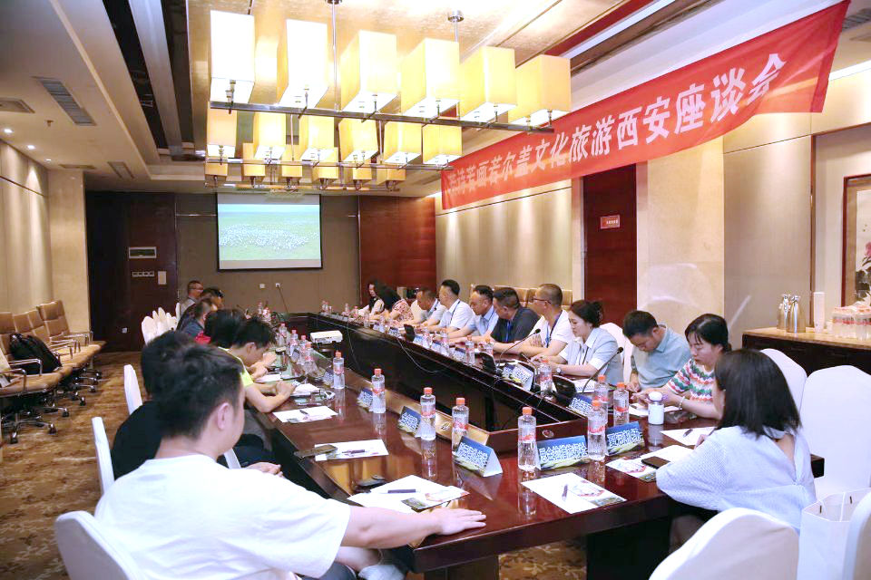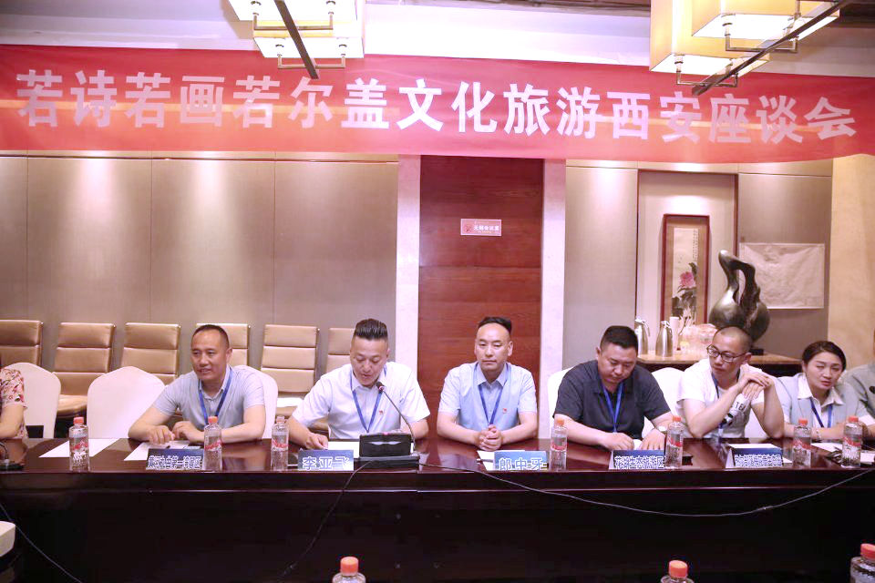 推介会前若尔盖县文化体育和旅游局、若尔盖县景区管理局携各大景区、酒店同西安旅游协会、西安市20余家主做若尔盖、九寨黄龙、甘南线路的旅行社进行了座谈交流。