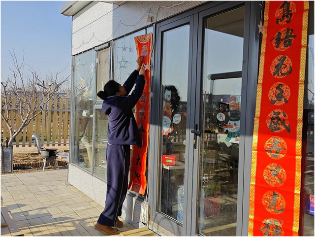 大石各庄村梨园民宿“悦果园”女主人于丽带着她刚刚放寒假的高中女儿前来领春联、接“福”字。“悦果园”女主人于丽表示:“我们早就听说过大石的‘1亩梨园+’民宿,慕名在大石千亩梨园租了一亩地,租期20年,经营民宿。愿北京书法家们的‘福’字蛇年给我们‘悦果园’民宿带来好运。”