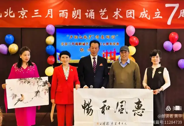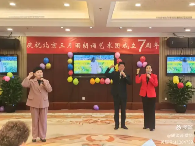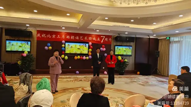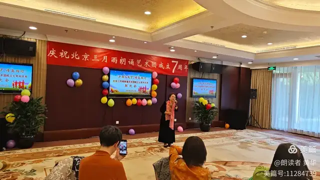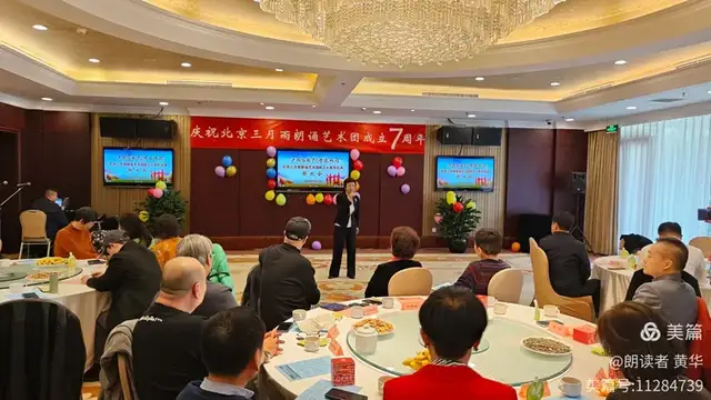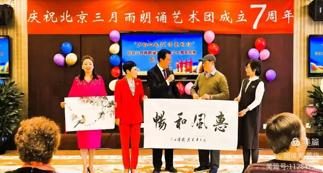 3 月 12 日,在这充满活力的三月“北京三月雨朗诵艺术团”成立七周年,中国诗歌诗词春晚朗诵艺术团成立三周年庆典。在北京五洲大酒店隆重举行。这场盛会汇聚了众多朗诵艺术爱好者、业内知名人士、北京电视台编导以及各界嘉宾,共同见证这一意义非凡的时刻,一同回顾三月雨朗诵艺术团七年来的辉煌历程。 活动现场,酒店的宴会厅被精心布置,洋溢着热烈而庄重的氛围。屏幕上滚动播放着艺术团七年来的精彩瞬间,从日常排练的专注神情到各类演出的精彩画面,无不勾起在场人员对过往时光的美好回忆。 徐文杰团长发表了热情洋溢的致辞,回顾了七年前艺术团创立的初衷与艰辛历程。七年来,受到众多艺术家的关怀与支持。秉持对朗诵艺术的追求,积极组织各类演出、公益活动和艺术交流,不仅提升了自身的艺术水平,更在传播文化、丰富群众精神生活方面发挥了积极作用。 庆典在一段充满美好希望的开场舞蹈中拉开帷幕。精彩节目轮番上演。歌曲、情景朗诵、越剧片段、模特时装秀、经典诗歌朗诵,也有原创作品的演绎,彰显了艺术团的创新活力。知名艺术家们也纷纷登台献艺,他们专业且深情的表演,赢得了现场观众的阵阵掌声与喝彩,将活动气氛一次次推向高潮。 值得一提的是,庆典还特别设置了表彰环节,对为艺术团发展做出突出贡献的成员和支持者进行了表彰,感谢他们多年来的无私奉献与大力支持。 此次三月雨朗诵艺术团成立七周年、中国诗歌诗词春晚朗诵艺术团成立三周年庆典。不仅是对过去七年成绩的总结与回顾,更是一个新的起点。相信三月雨朗诵艺术团将继续秉持初心,在朗诵艺术的道路上砥砺前行做出贡献。